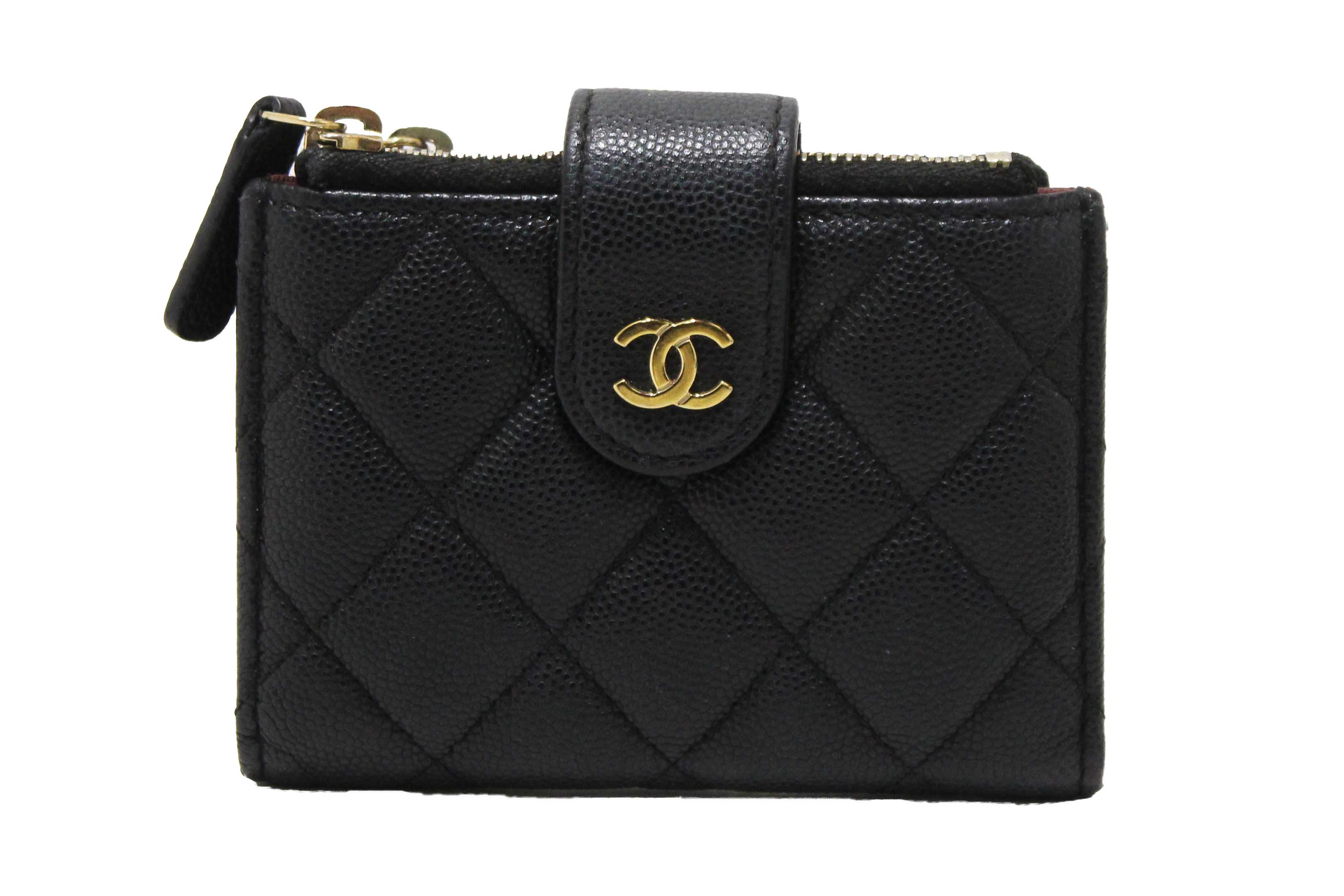 Chanel Black Quilted Caviar Double Zip Mini French Wallet