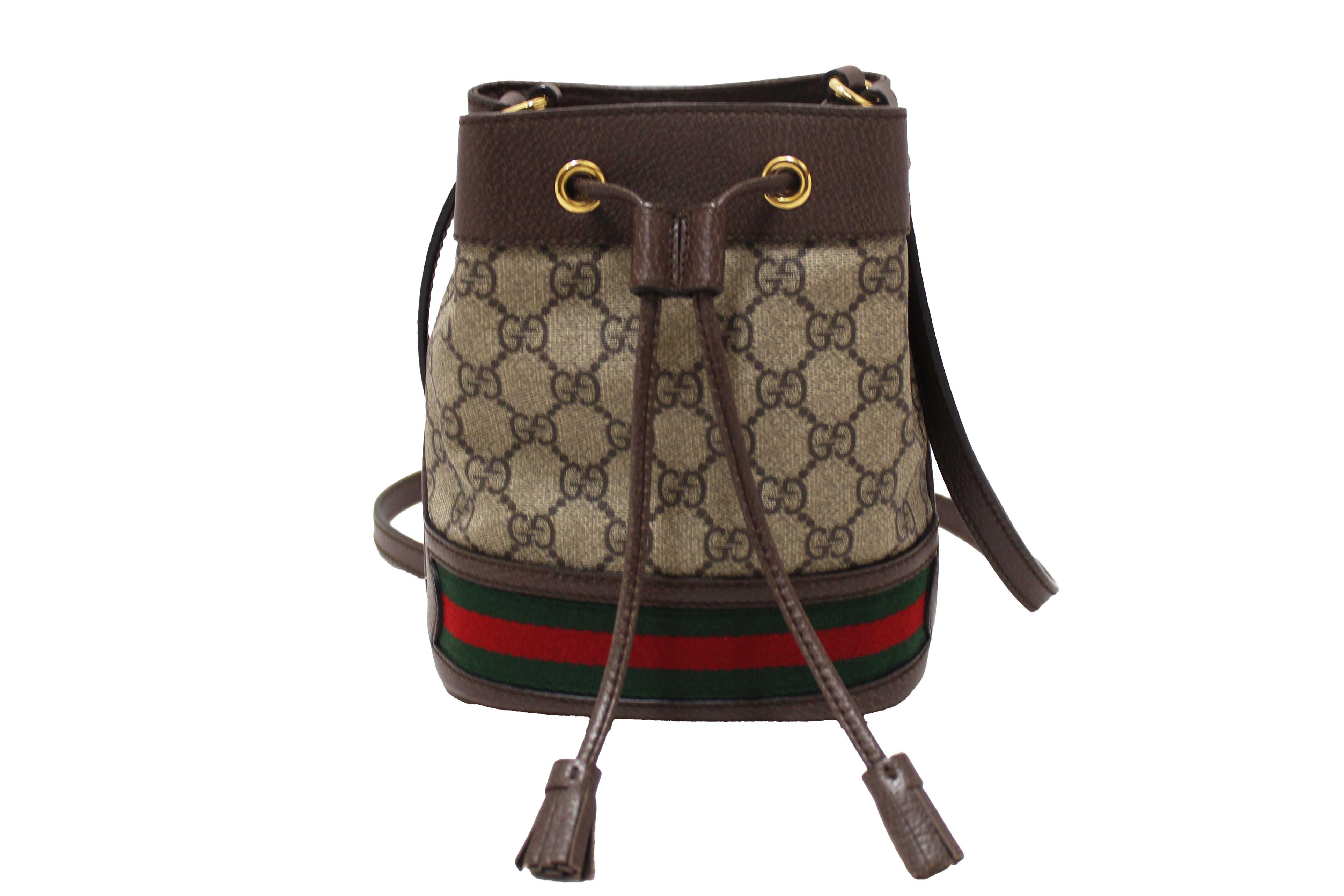 Authentic Gucci Brown Ophidia GG Supreme Mini Bucket Bag