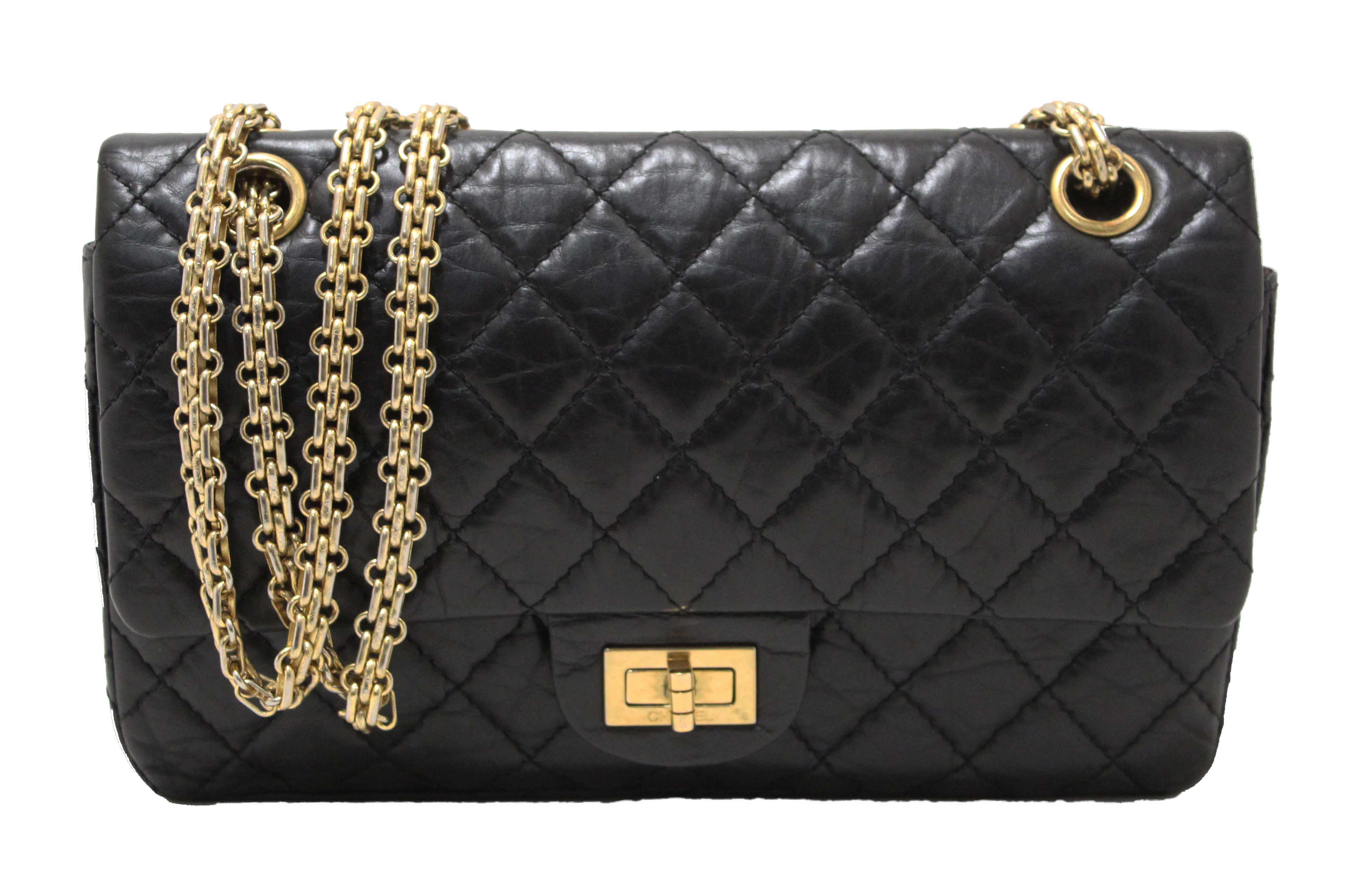Authentic Chanel Classic Black Aged Calfskin Leather Reissue 2.55 Double Flap Bag