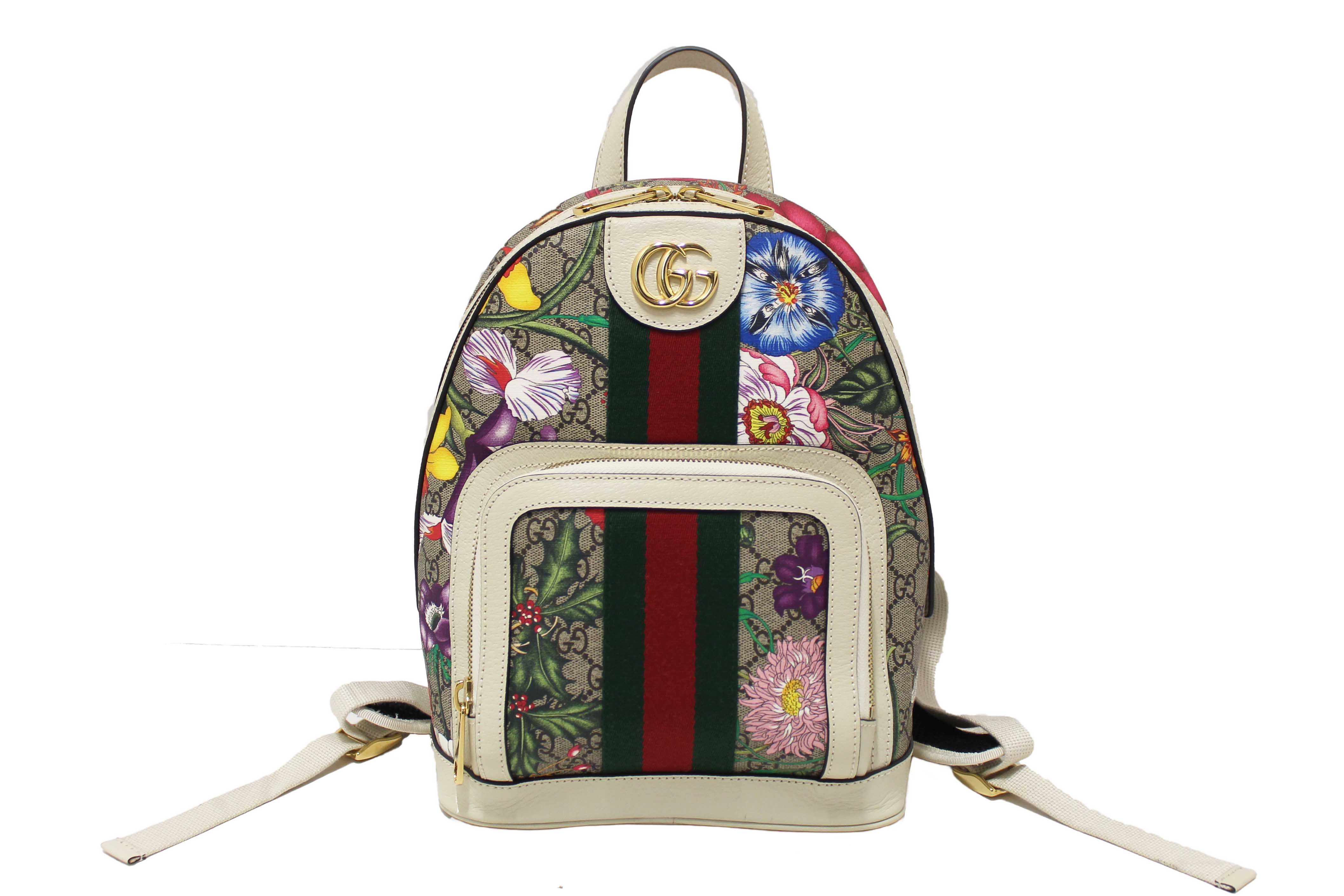 Authentic Gucci White Ophidia GG Supreme Flora Day Backpack